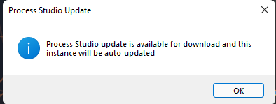 Sometimes we are not able to publish the workflow on Process Studio and when we do the Process Studio downloads and installs binary, it auto updates Process studio but doesn't reopen and gets a message as below: