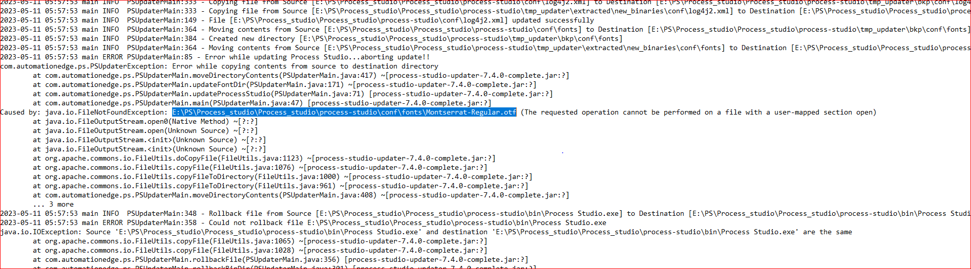 That Font file was locked by JVM and during update updater was not able to update Font Directory